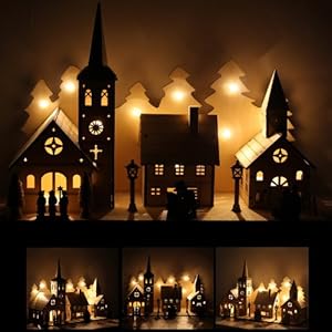 Werchristmas 35 cm pre-lit wooden church and village scene